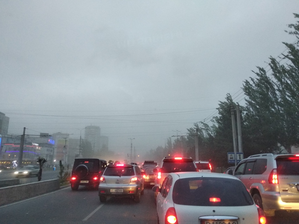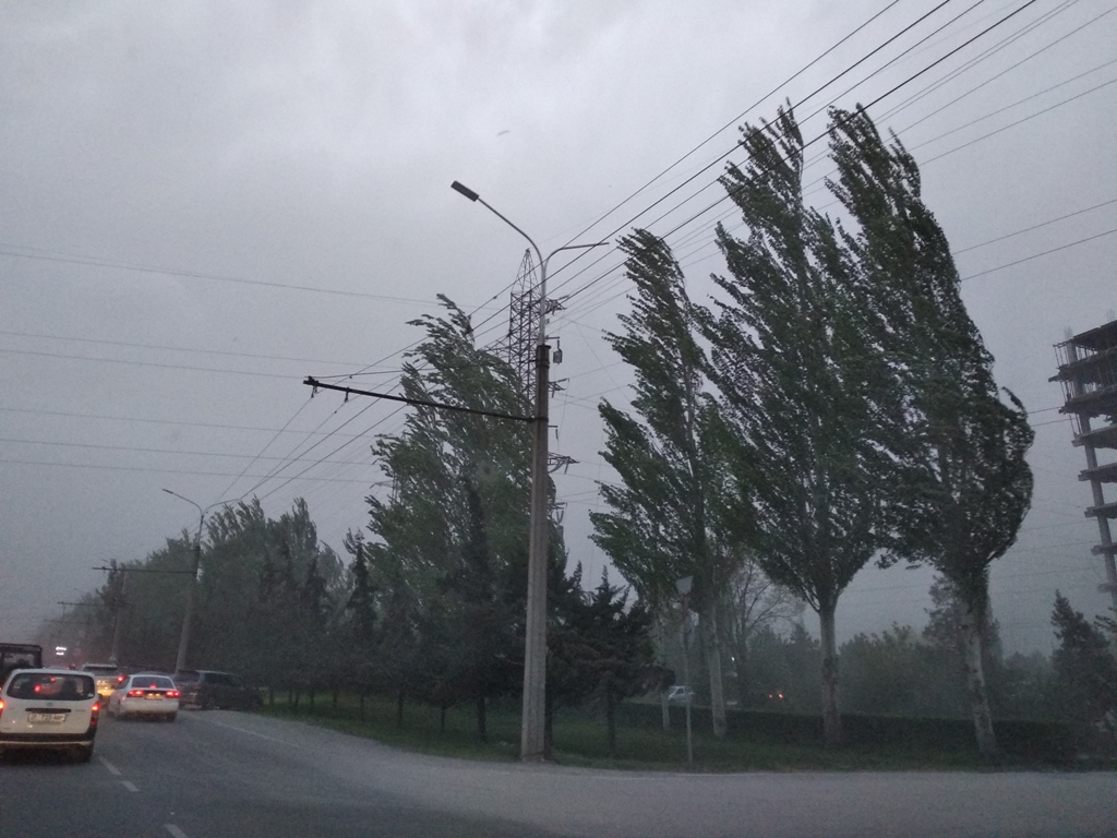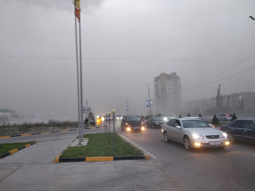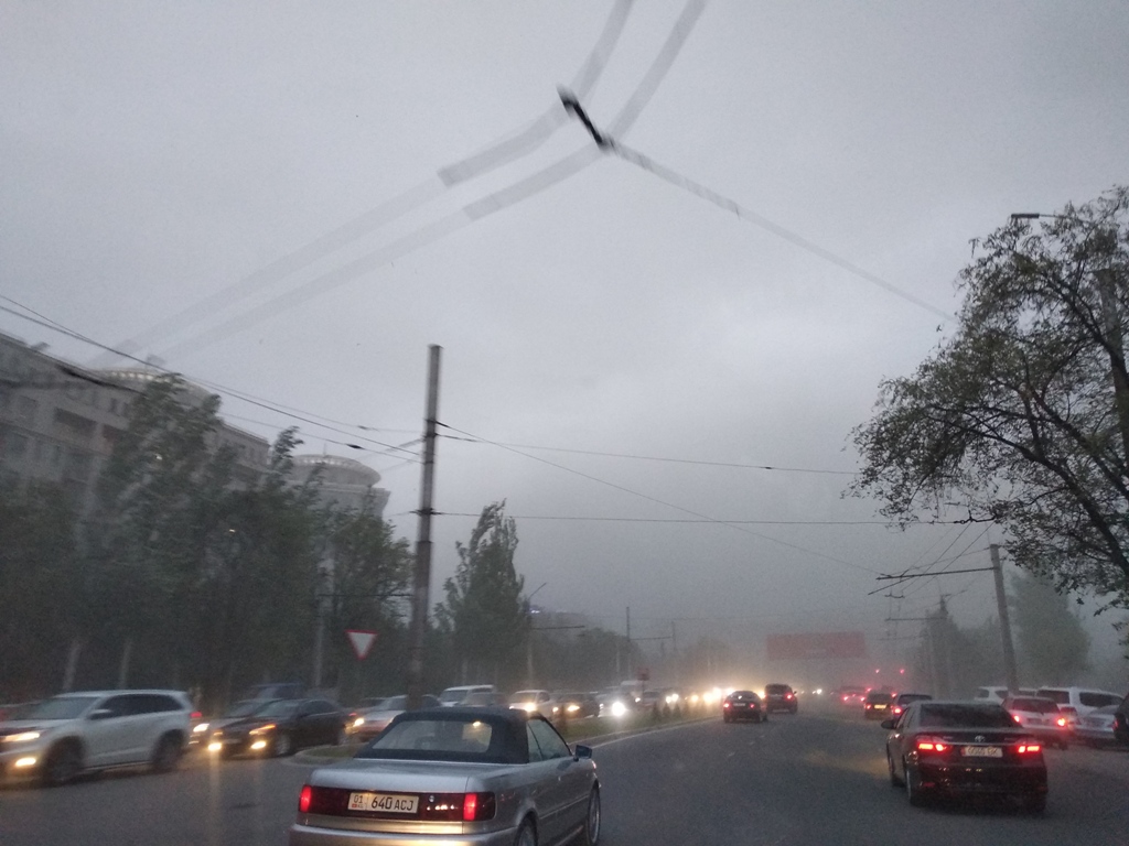 В Бишкеке, как и обещало МЧС, примерно в 19.30 начался шквалистый ветер.