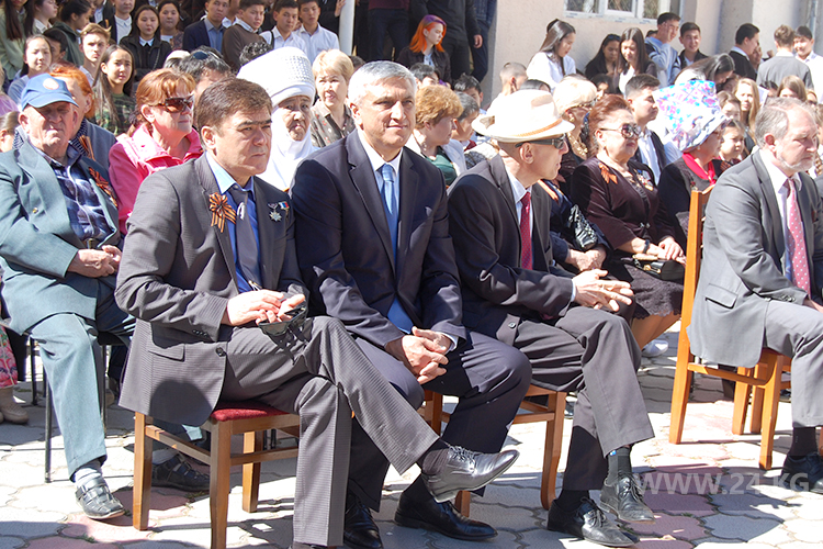 На церемонию собрались ветераны войны и тыла, Герой Кыргызстана и России космонавт Салижан Шарипов, школьники, дипломаты и чиновники. Оказалось, космонавт — частый гость в этой школе. «Он приезжает к нам каждый год, учит детей мужеству, стойкости и патриотизму», — сказала директор учебного заведения Анара Абдураимова.