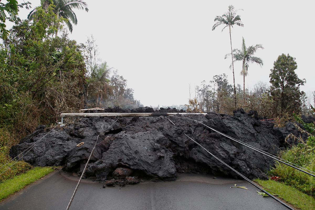 На острове зафиксировано уже 19 таких трещин. К кромке океана со скоростью 20 километров в час течет узкий поток лавы. В субботу, 12 мая, возле кратера открылись три новые глубокие трещины, высота нагромождений застывшей лавы достигла высоты четырехэтажного дома. Извержение сопровождается выбросами ядовитых газов.