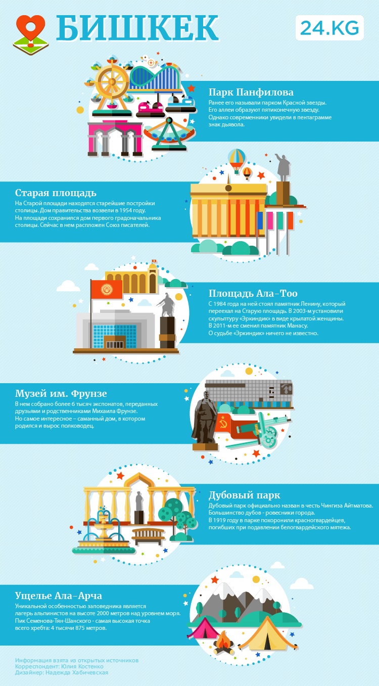 Многие туристы начинают знакомство с Кыргызстаном со столицы. Основные достопримечательности Бишкека расположены в центре города. Но буквально в часе езды — красивейшие заповедники и ущелья.