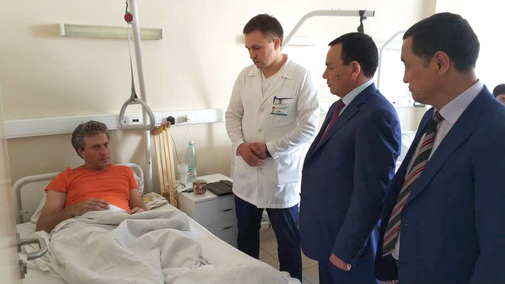 Министр внутренних дел Кыргызстана Кашкар Джунушалиев навестил пострадавших в результате наезда таксиста-кыргызстанца в Москве.