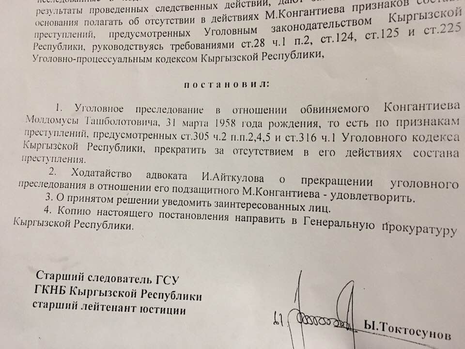 Напомним, бывшего главу МВД Молдомусу Конгантиева обвиняли в превышении должностных полномочий во время апрельских событий 2010 года.