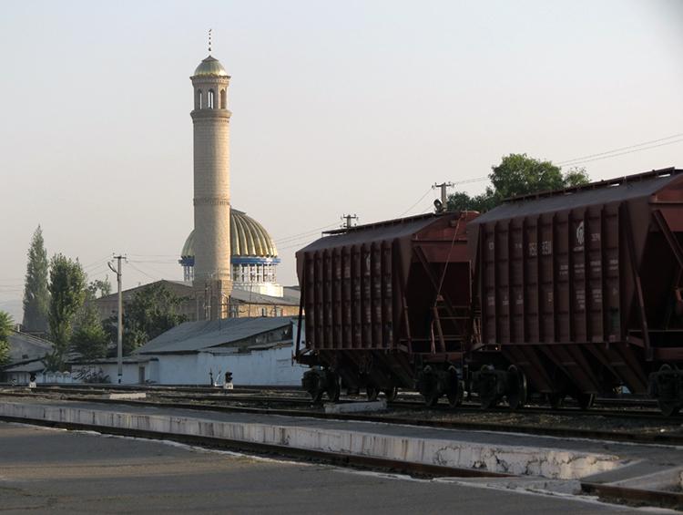 Через весь Джалал-Абад проходят железнодорожные пути, где-то они поросли травой и деревьями. Город стал конечным пунктом первой в Кыргызстане железной дороги.
