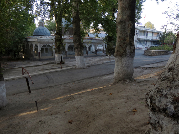 Привокзальная площадь – одно из городских мест, богатых историческими событиями. Вокруг площади, которая получила свое окончательное очертание в 1986 году, размещались пункты по сбору и хранению хлопка, скотобойня, десятки мастерских ремесленников и лавок мелких торговцев. Именно отсюда Михаил Фрунзе отправил Владимиру Ленину срочную телеграмму о борьбе с басмачеством в Ферганской долине и недобитыми белогвардейцами в 1920 году.