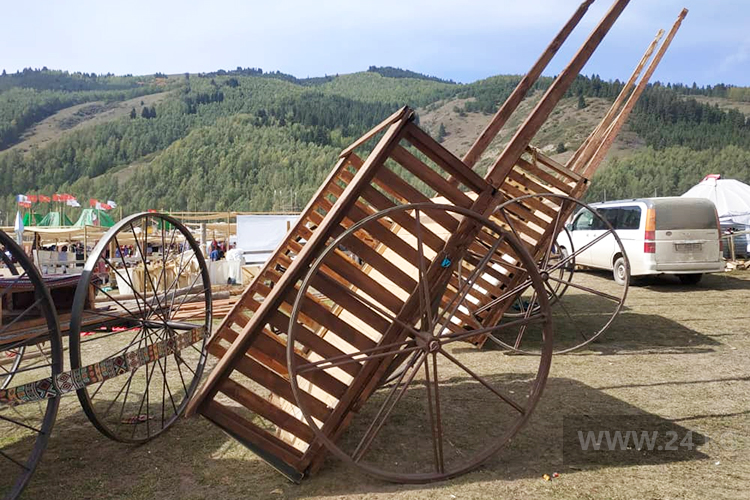 В рамках III Всемирных игр кочевников на джайлоо Кырчын развернули этнобазар. Он стилизован под старинный рынок: вместо крыш над прилавками натянуты льняные полотна.