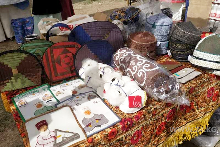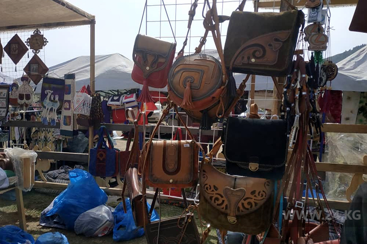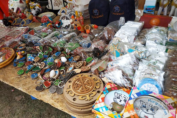 Чего тут только нет: и национальная одежда, и меха, и изделия из кожи, дерева, керамики. Уйти без покупки вряд ли удастся. Вот и мы не удержались, приобрели магниты и тарелочки с изображением снежного барса — символа III ВИК. Продавец, член Союза народных мастеров КР Римма Исакова, признается, что раскупают их очень быстро.