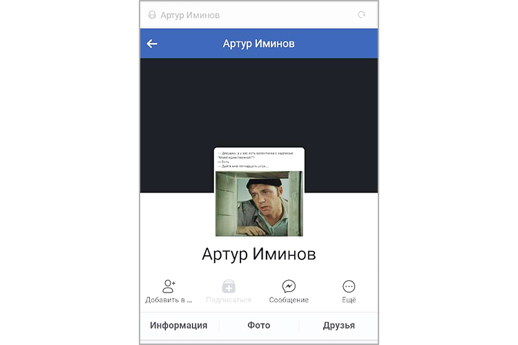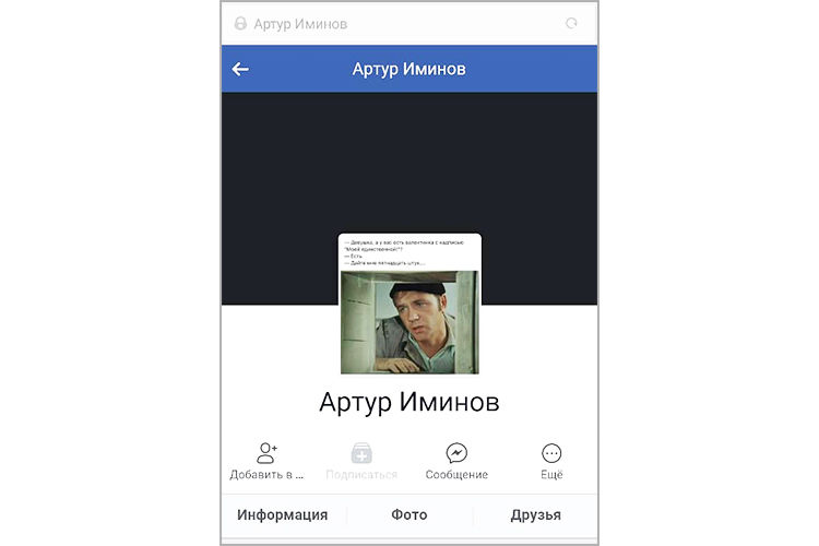 Жыргалбек Турускулов креативнее подошел к оформлению фейковой странички в интернете, где он значится как Артур Иминов. В качестве аватарки он использовал изображение героя фильма «Афоня».