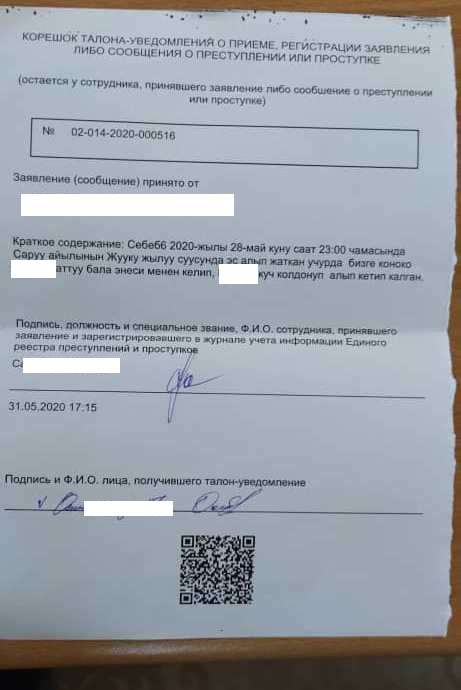 По ее словам, девушка — сирота, живет в Бишкеке. Знакомые пригласили отдохнуть на Иссык-Куле, а когда та согласилась, на месте ее украли.