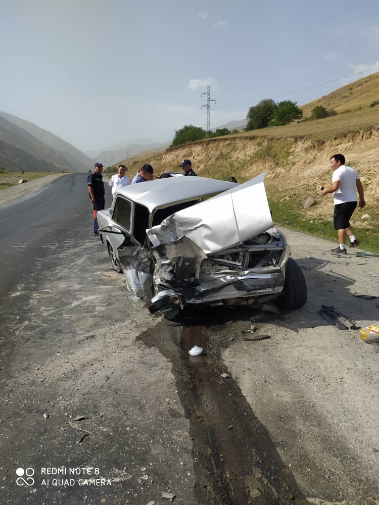 По ее данным, сегодня примерно в 9.00 водитель автомашины «Хундай», двигаясь в сторону Бишкека, на 83-м километре автодороги Бишкек — Ош, по предварительным данным, совершая обгон, столкнулась с «ВАЗ-2104», который ехал в южном направлении.