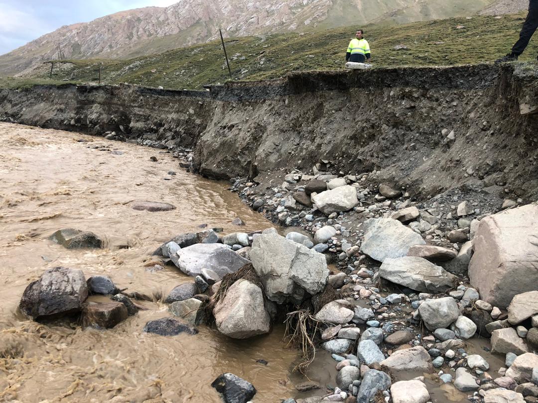 Автодорогу Каракол — Энильчек с 95-го по 100-й километр размывает водный поток с грязью. Об этом сообщили в Министерстве транспорта и дорог.