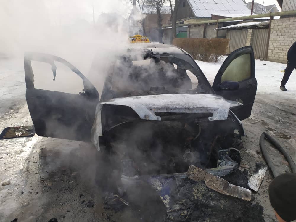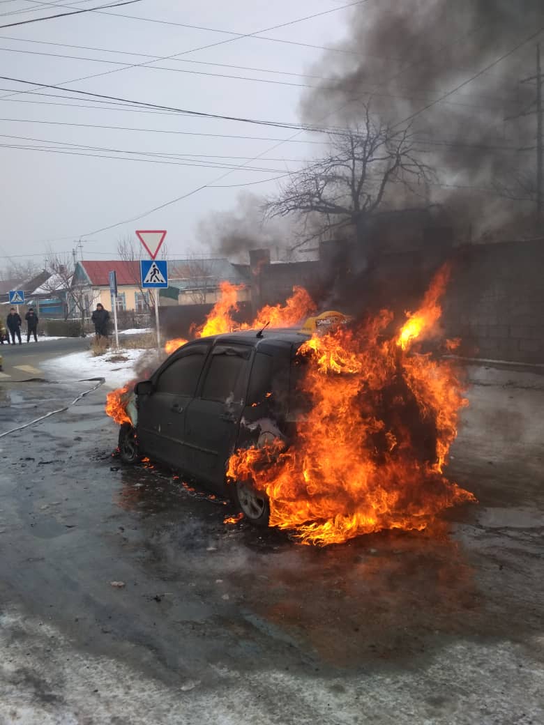 В Бишкеке в районе «Рабочего городка» сгорел автомобиль. Видео происшествия опубликовали в Telegram-канале «Короче».