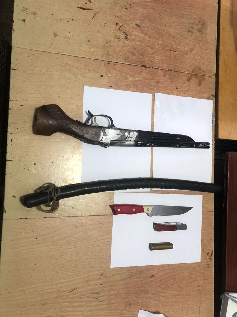Милиционеры обнаружили на входной двери следы от выстрела. Был обнаружен обрез гладкоствольного ружья, патрон к нему и нож. В ведомстве отметили, что дебошира не стали задерживать, ограничившись изъятием у него оружия.