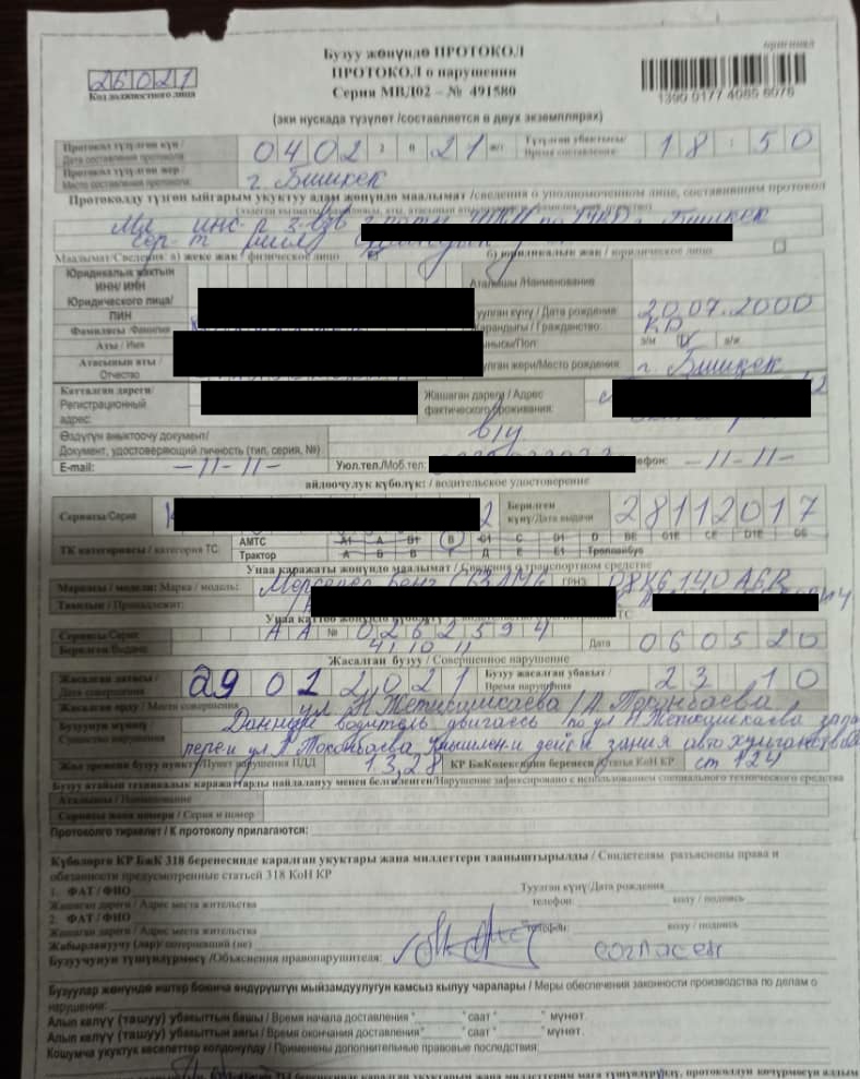 Нарушил ПДД несколько раз. Водителя Mercedes оштрафовали на 18 тысяч 500 сомов