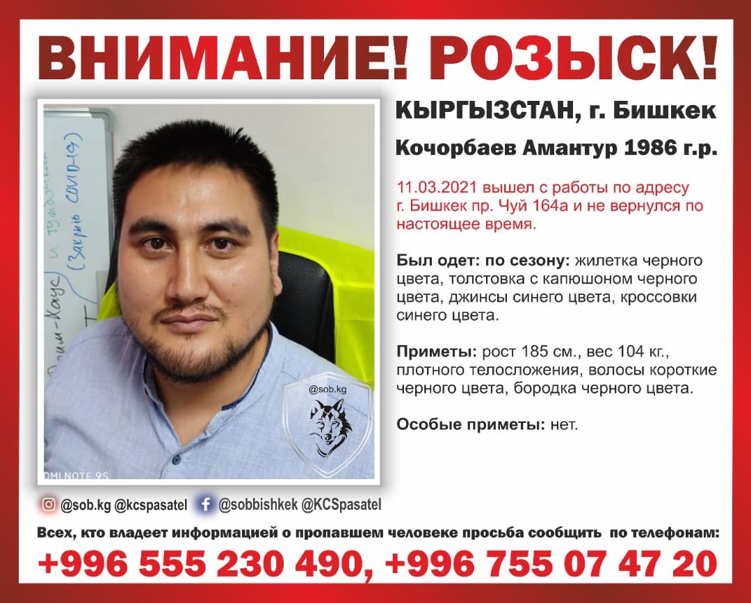 Тех, кто владеет информацией о местонахождении Амантура Кочорбаева, просят сообщить по телефонам: 0555230490, 0755074720.