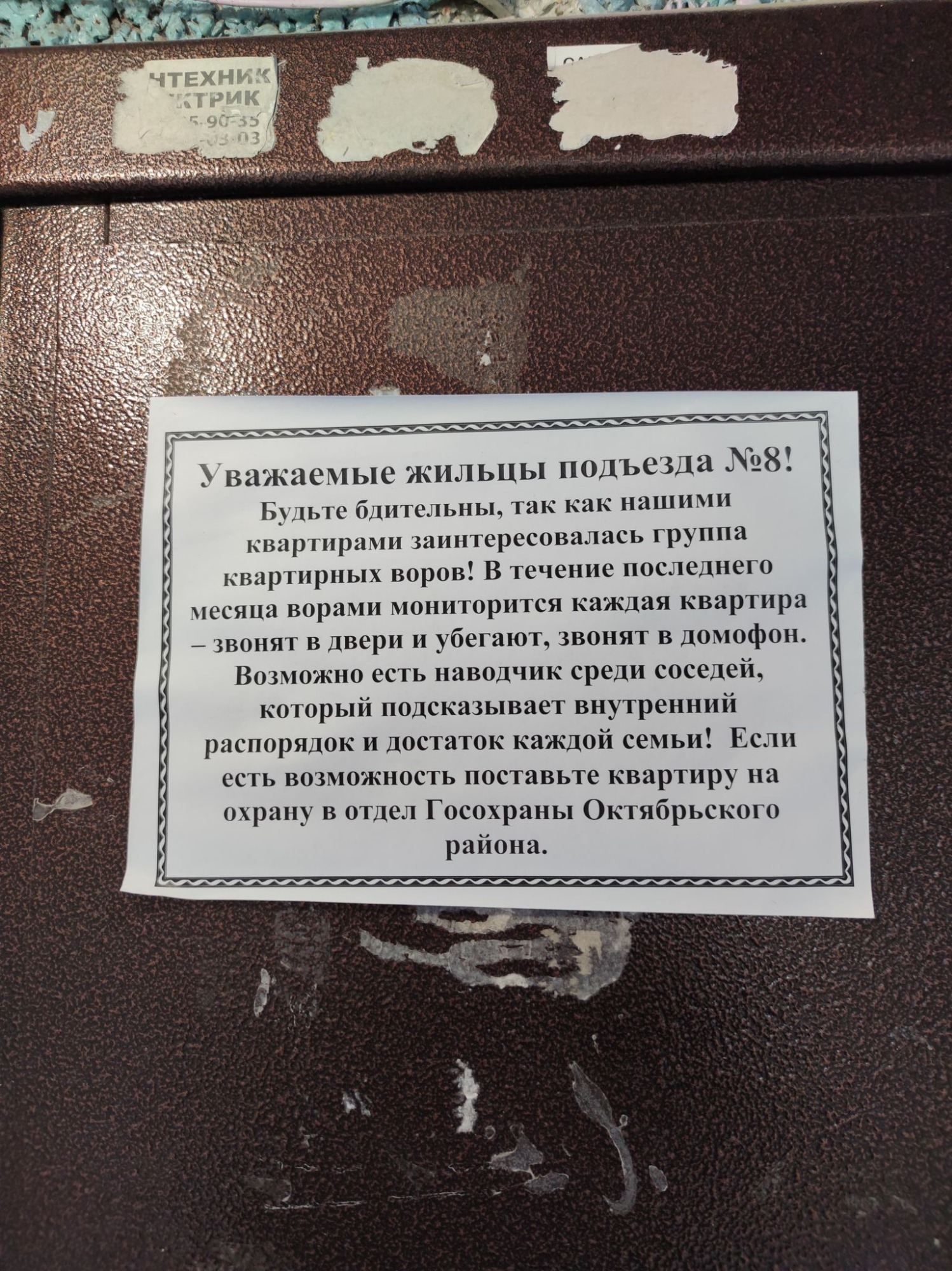 Соседка недавно говорила, что какие-то молодые люди якобы приходили проверять счетчики. Но, как позже выяснилось, они не сотрудники службы газа или энергосбыта.