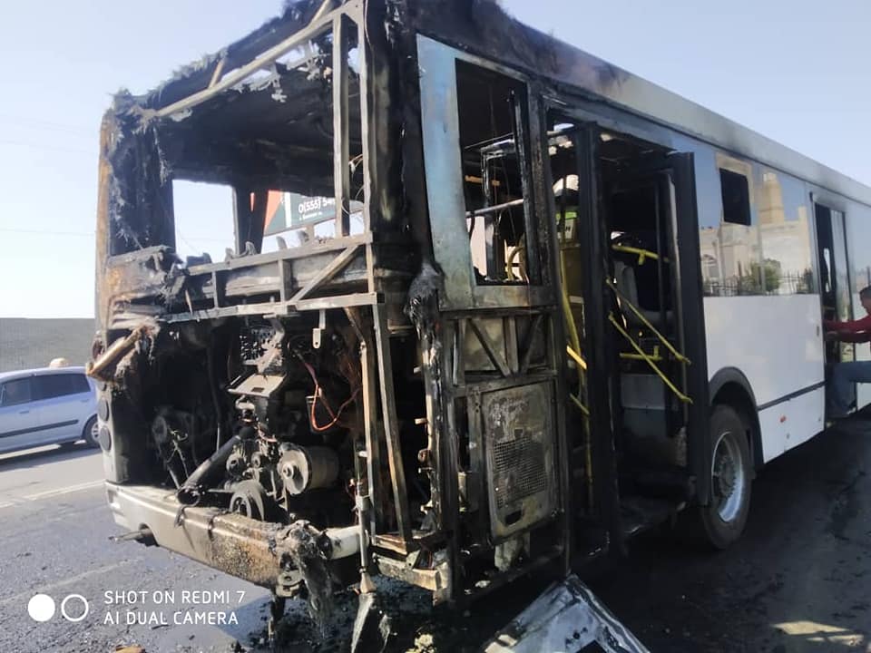 В городе Ош сгорела тыльная часть пассажирского автобуса № 13