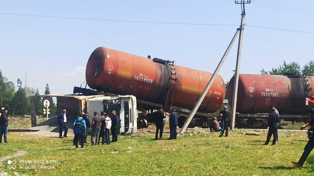 Фото очевидцев. В Джалал-Абаде грузовой автомобиль столкнулся с поездом