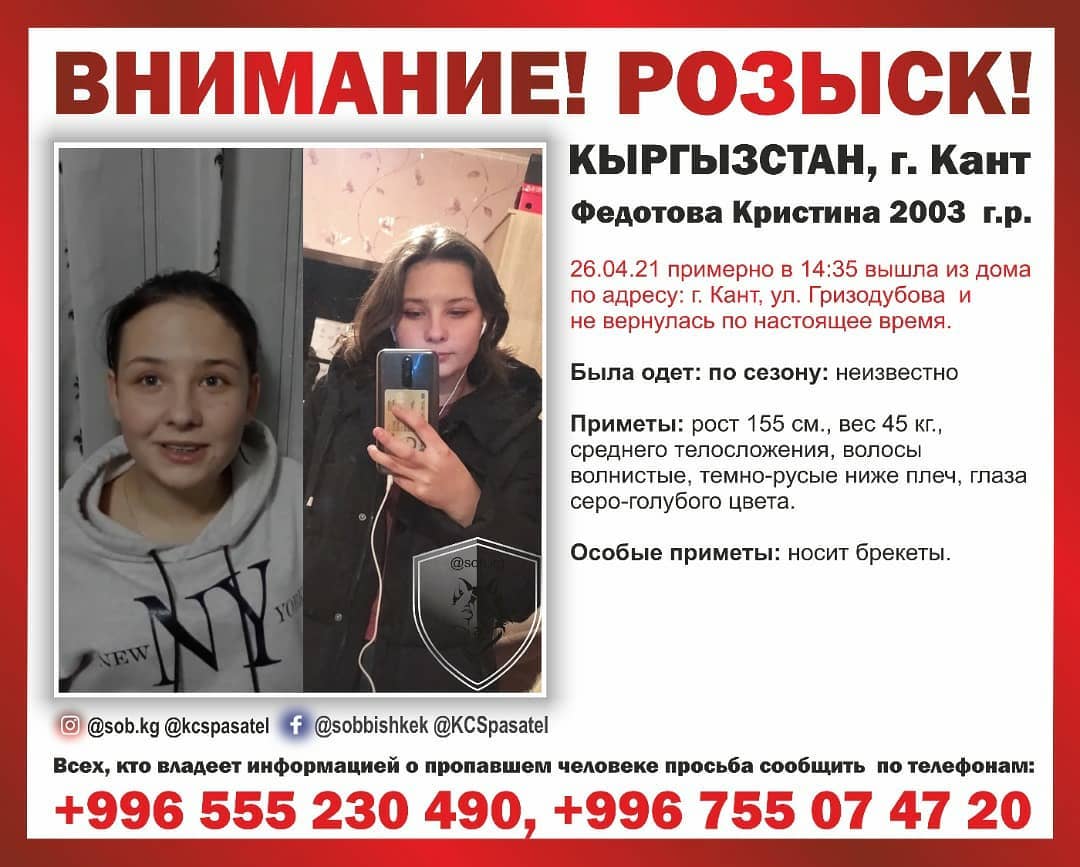Внимание, розыск! В Канте пропала 18-летняя Кристина Федотова
