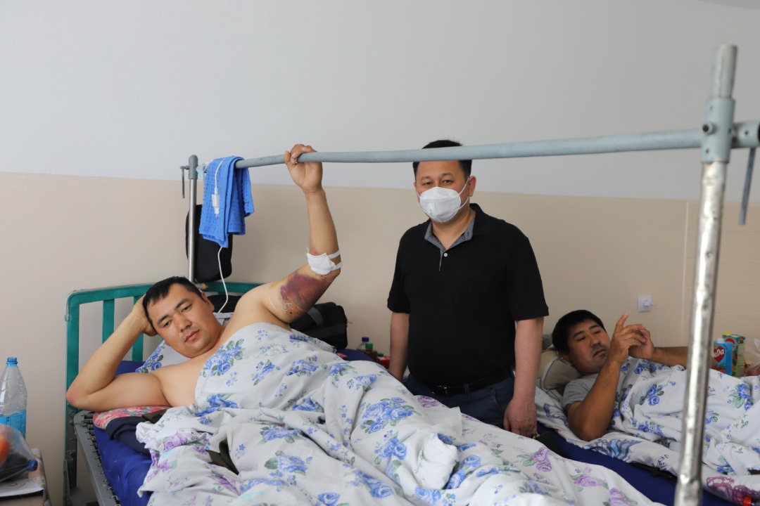Отмечается, что руководитель службы по противодействию экстремизму МВД Жениш Жоробеков встретился в больнице не только с пострадавшими, но и с их родственниками.