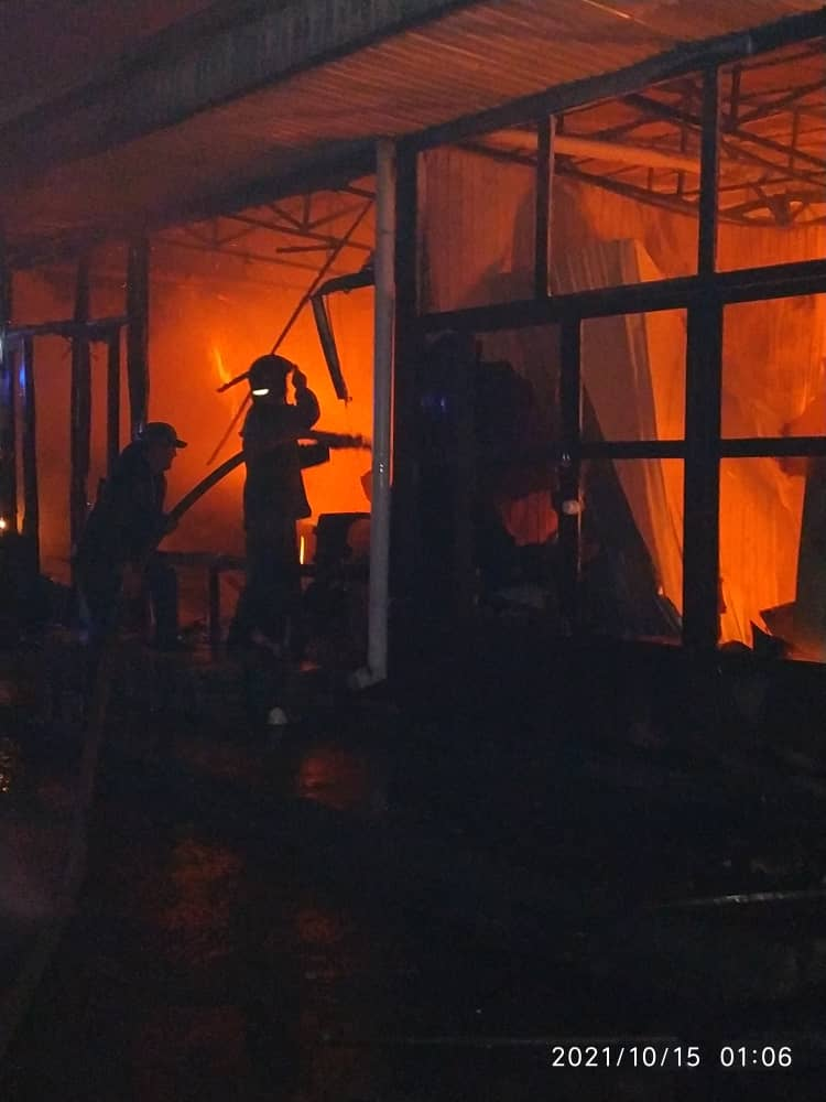 Возгорание удалось локализовать в 01.13 и потушить полностью в 03.37. Отмечается, площадь пожара составила около 700 квадратных метров. Сгорела столовая, токарный цех, магазин одежды, продуктовый магазин, текстильный магазин и крыша строящегося нового магазина.