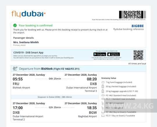 Миних отправилась в Багдад через Дубай. С ней из Бишкека на работу улетели еще три девушки.