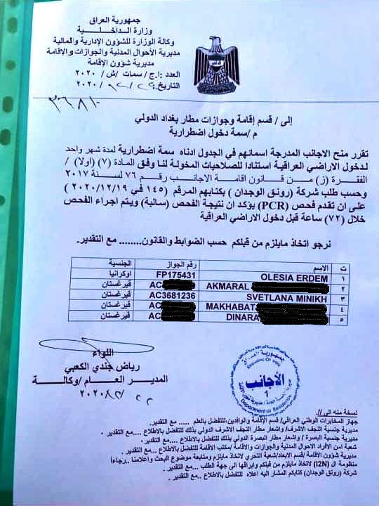 Консул попросил Катерину обратиться в находящийся в Бишкеке Информационно-консультационный центр департамента миграции при МИД и пообещал сделать запрос через коллег из России и Украины в МИД Ирака, так как их представительства в Багдаде есть.
