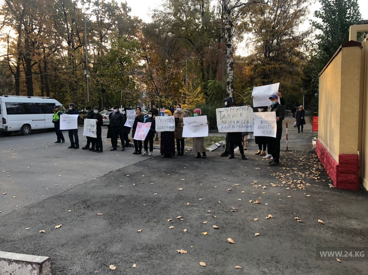 В Бишкеке около здания ГКНБ проходит митинг против Асыл Талиповой, подозреваемой в мошенничестве.