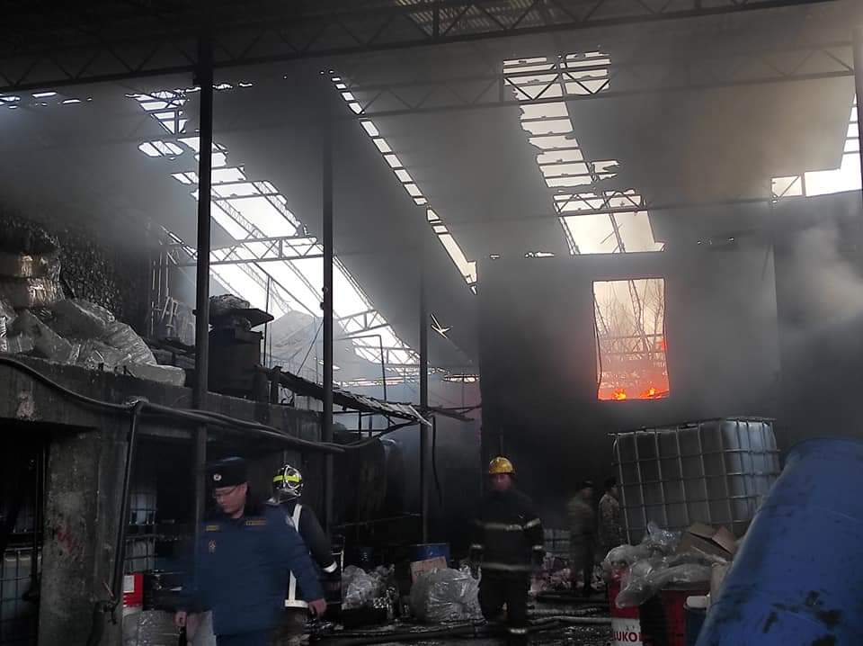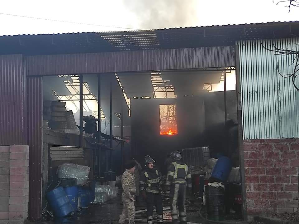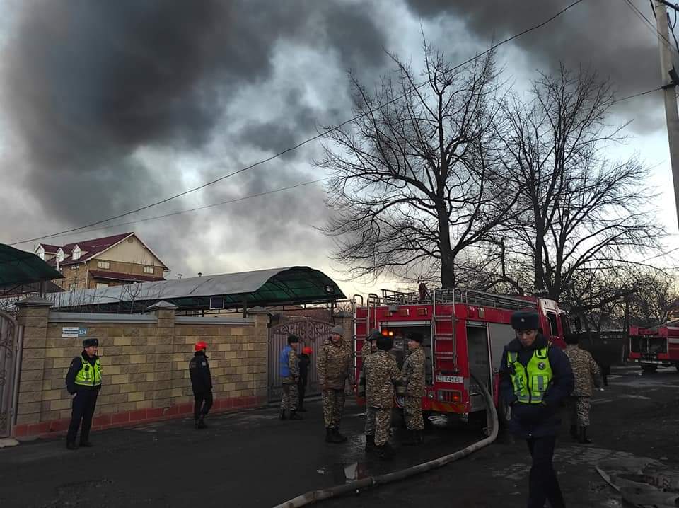 В Бишкеке в районе проспекта Жибек Жолу и улицы Тимирязева горит склад ГСМ. На месте работают пять пожарных расчетов, милиционеры и спасатели.