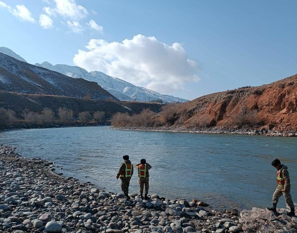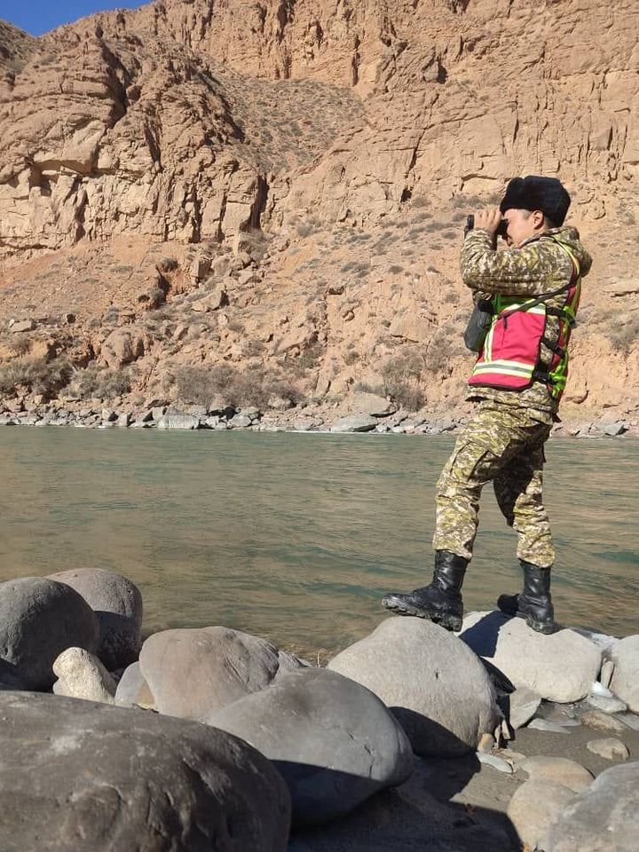 20 спасателей МЧС и местные жители прочесывают берег реки Нарын. Сегодня поиски продолжились.