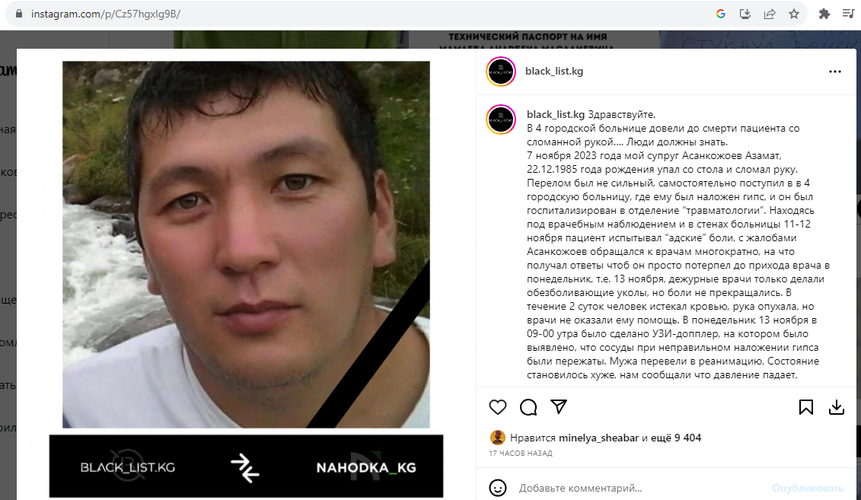 В Городской больнице скорой медицинской помощи довели до смерти пациента со сломанной рукой. Публикация об этом появилась в одной из групп в Instagram.