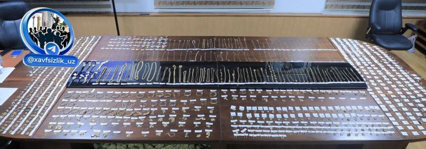 Общий вес золотых ювелирных изделий составляет 5 килограммов 706 граммов, первоначальная стоимость оценивается в 5 миллиардов 746 миллионов сумов.