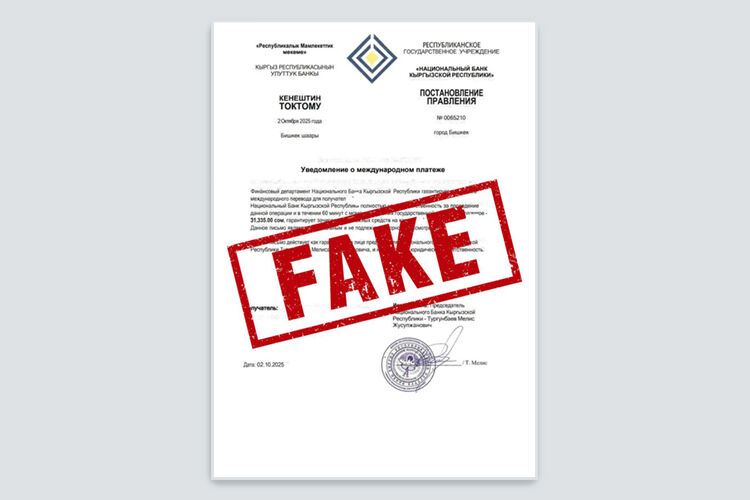 Национальный банк предупредил об очередной схеме мошенников. Для убедительности они демонстрируют документы с поддельной подписью председателя Национального банка Кыргызстана.
