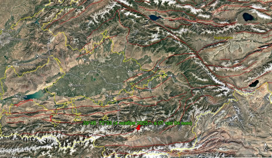 Как сообщили в Институте сейсмологии, по предварительной информации, очаг землетрясения располагался в районе Алайского хребта, в 20 километрах к северо-западу от села Кашка-Суу, в 28 километрах к юго-востоку от села Кара-Отек, в 87 километрах к юго-западу от Оша.