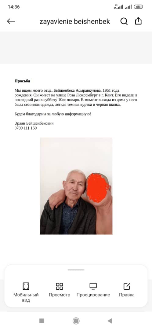 Правоохранительные органы просят всех, кто располагает какой-либо информацией о местонахождении Бейшенбека Асыранкулова, незамедлительно сообщить в ОВД Иссык-Атинского района.