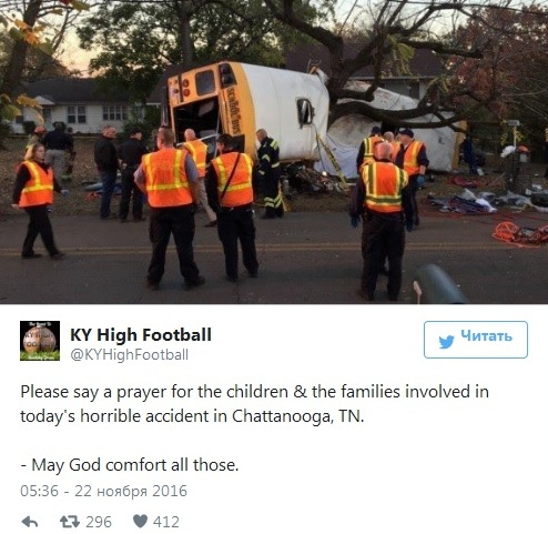Школьный автобус попал в ДТП в американском городе Чаттануга (штат Теннесси), по меньшей мере, 12 человек погибли. Об этом сообщило Reuters.