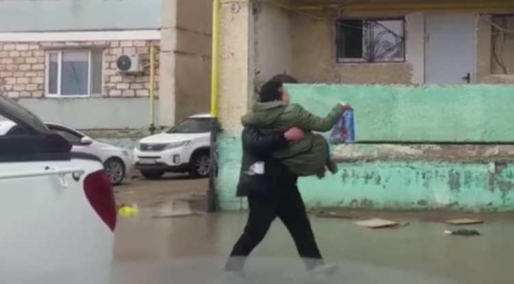 В Казахстане жители Актау носят друг друга на руках из-за проливных дождей