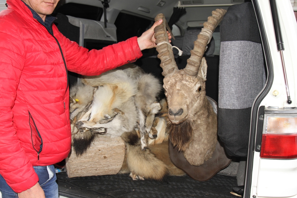 По ее данным, 24 марта в жилом массиве «Дордой» близ Бишкека был задержан Элеман Абыкеев, который без разрешительных документов продавал чучело медведя, восемь волчьих шкур, три шкуры лисицы, а также три малахая из лисы и один трофей — голову козерога.
