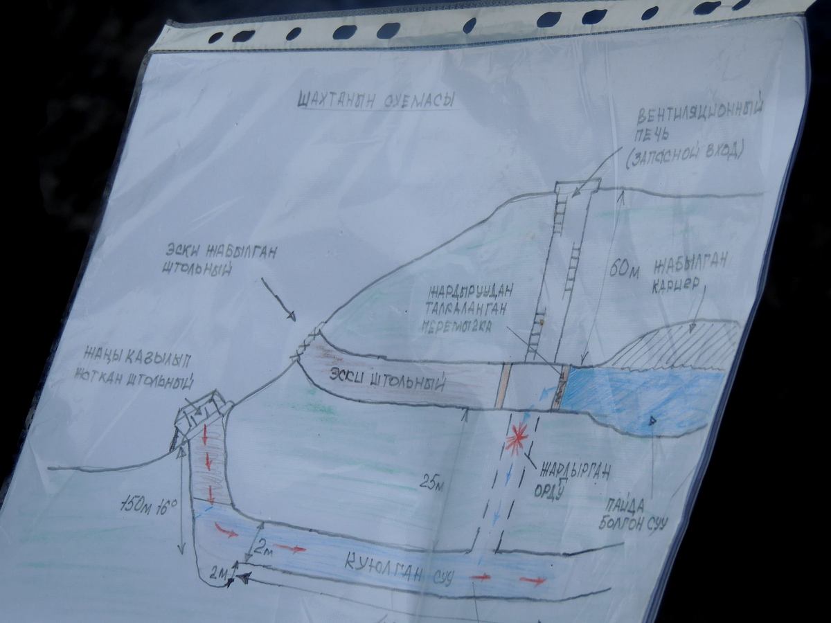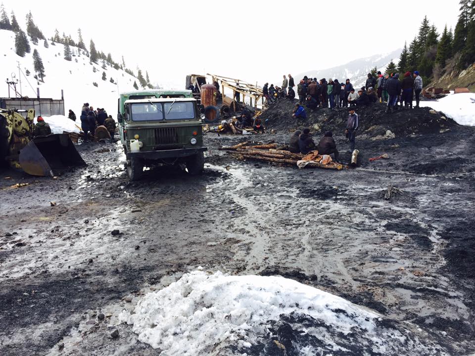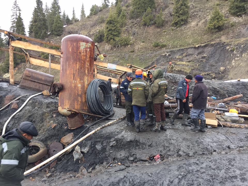 «В данное время здесь работает много людей, местные жители и сотрудники областных и районных структур, подразделение МЧС по Иссык-Кульской области и сотрудники Службы гражданской защиты Ак-Суйского района. Они ведрами выносят воду из шахты. Компания «Кумтор» направила группу специалистов с двумя насосами для откачки воды. Всю ночь работали. В шахте много грязи, смешанной с водой. Но мы надеемся, что в шахте могут быть сухие места, где шахтеры ожидают помощи», — сказала она.