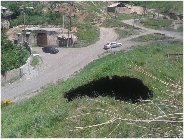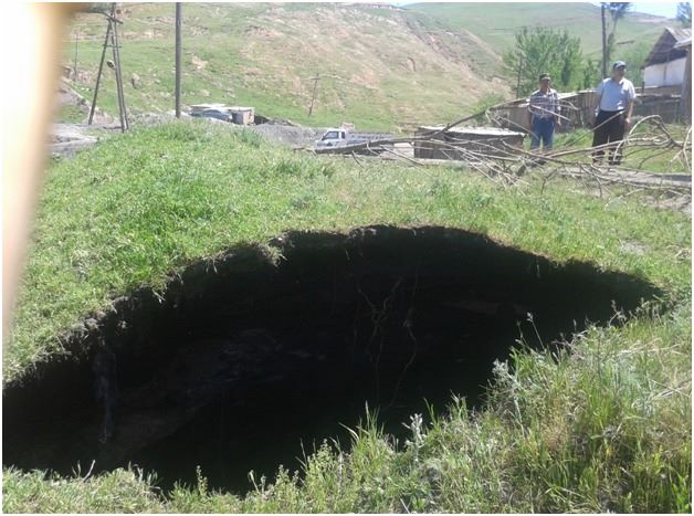 В городе Сулюкте Баткенской области образовалась воронка шириной три и глубиной семь метров. Об этом сообщила пресс-служба МЧС Кыргызстана.