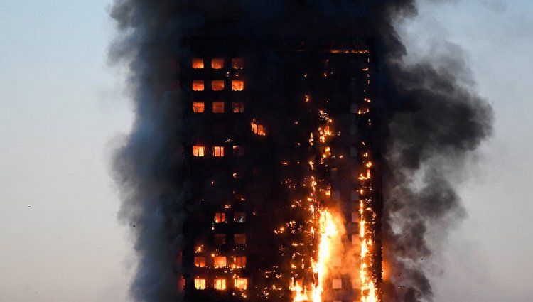 Мощный пожар охватил 27-этажный жилой многоквартирный дом Grenfell Tower в Лондоне поздно ночью. Пока здание не потушено. На место происшествия прибыли 40 пожарных машин и 200 сотрудников службы.