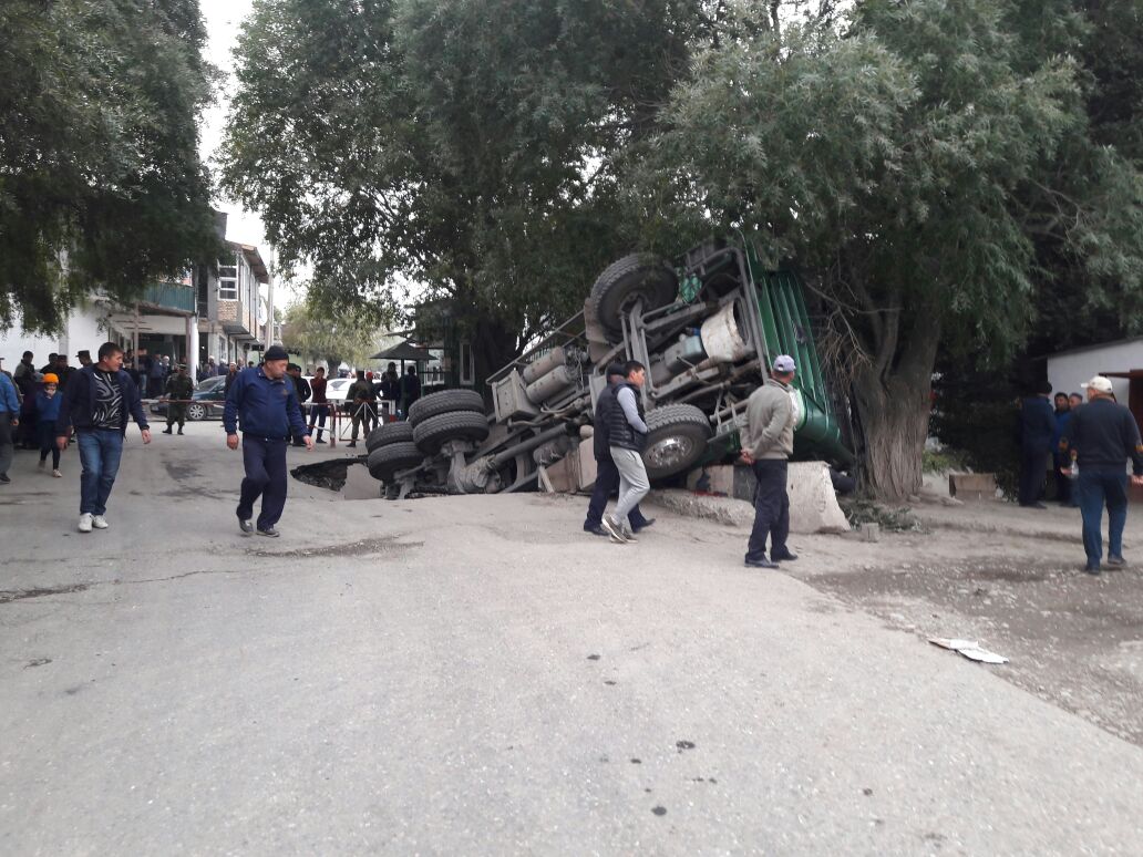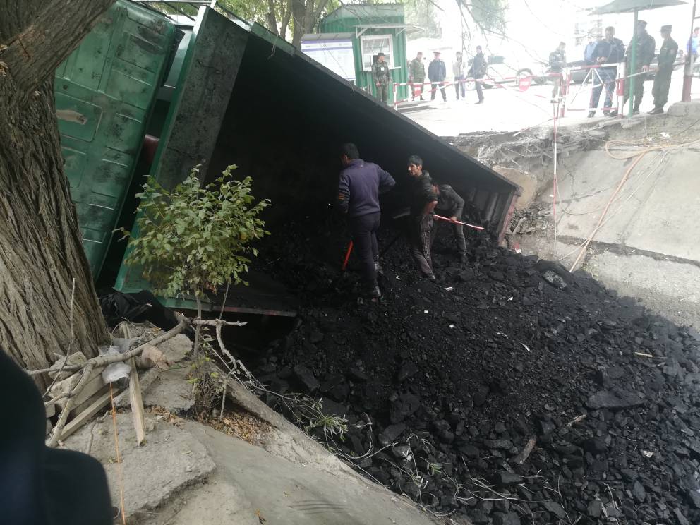 В Интернете появилось видео, где грузовик с углем проваливается на мосту. Происшествие произошло близ села Кулунду Ляйлякского района Баткенской области на границе с Таджикистаном. Грузовик провалился в канал.