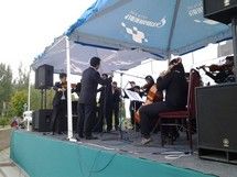 В минувшие выходные в Бишкеке прошел фестиваль классической музыки TENGRI music, организованный Общественным фондом Prima при поддержке мэрии. Несмотря на дождь с утра и прохладный порывистый ветер, усилившийся после обеда, на месте проведения акции – в парке Победы – к четырем-пяти часам собралось немало людей. Всем не терпелось услышать классическую музыку под открытым небом на фоне стелы и ослепительных кыргызских гор. К слову, для концерта организаторы выбрали одно из лучших мест в столице – просторный и ухоженный парк с богатыми цветниками и раскидистыми деревьями.