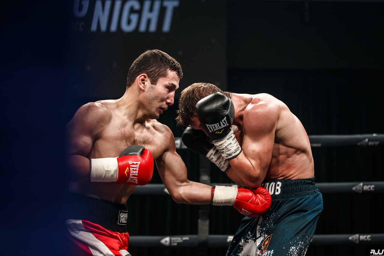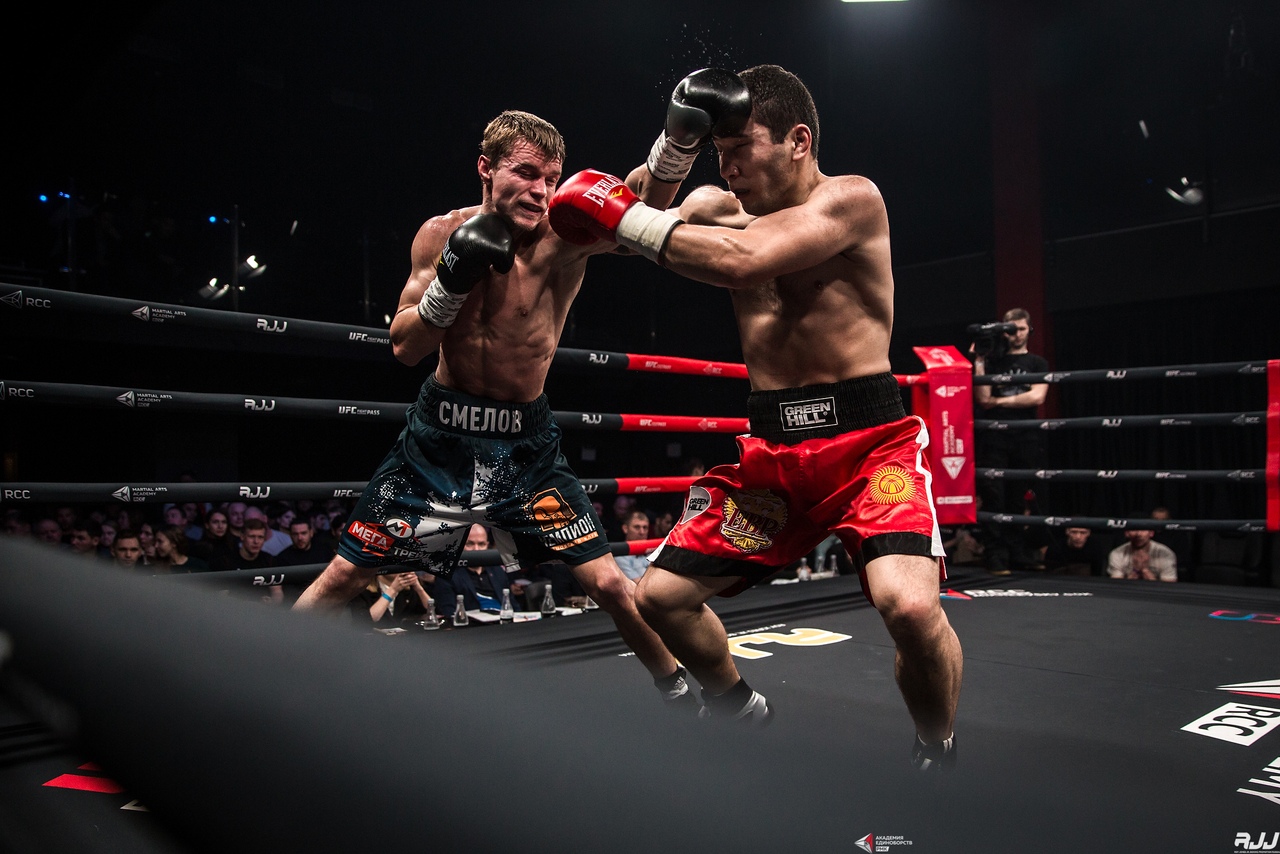 Одним из организаторов состязаний был легендарный Рой Джонс младший. В программе было восемь боев. В весовой категории до 59 килограммов Эржан Тургумбеков встречался с Евгением Смеловым (РФ). Наш боксер с самого начала владел преимуществом, отправил соперника в нокдаун. В шестом раунде из восьми запланированных у Смелова появилось серьезное рассечение, и врач остановил бой. Судьи единогласно отдали победу Эржану.