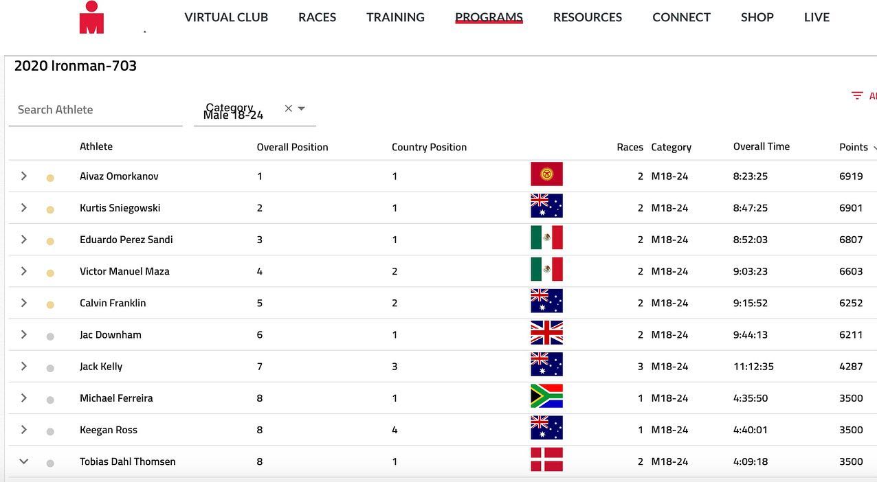 «Хочу поделиться радостной новостью с вами. У Ironman есть ежегодный рейтинг спортсменов, что дает статус All World Athlete в трех дисциплинах: Ironman, Ironman 70.3 и Overall. В конце года по итогам трех лучших гонок вы получаете свой статус: GOLD, SILVER и BRONZE. Этот год, к сожалению, для всех был тяжелым и гонок было очень мало, но мне посчастливилось поучаствовать на двух половинках 70.3 и набрать наивысшее количество очков в своей возрастной категории, что дало возможность мне занять первую строчку в рейтинге мира в категории 18-24», — написал спортсмен.