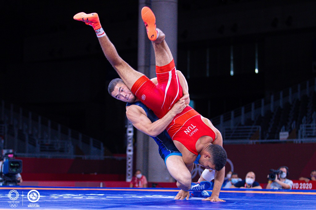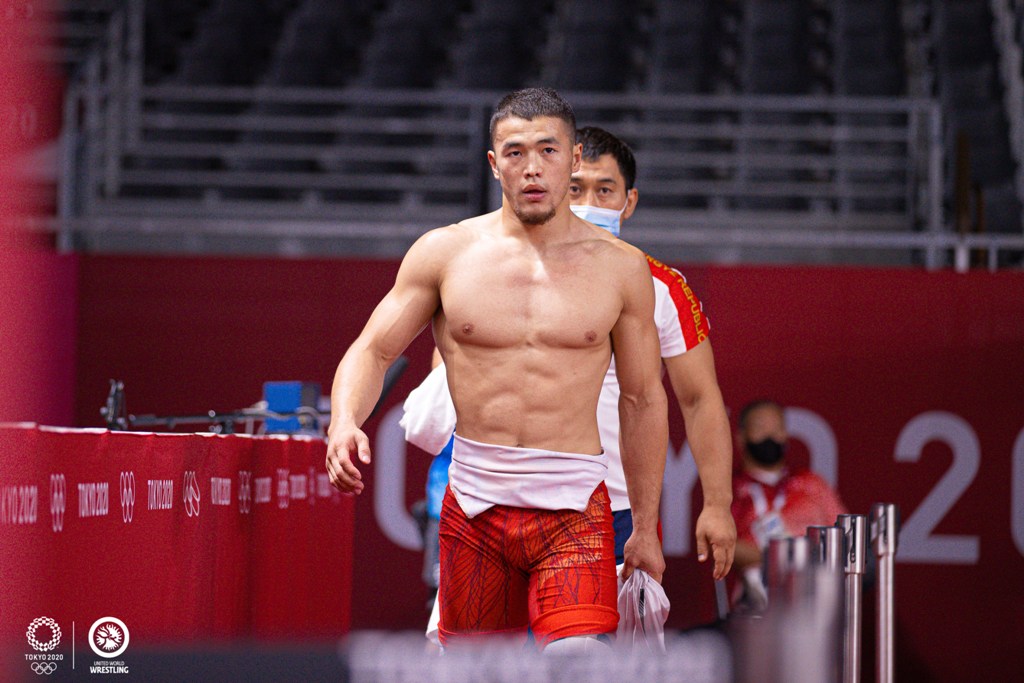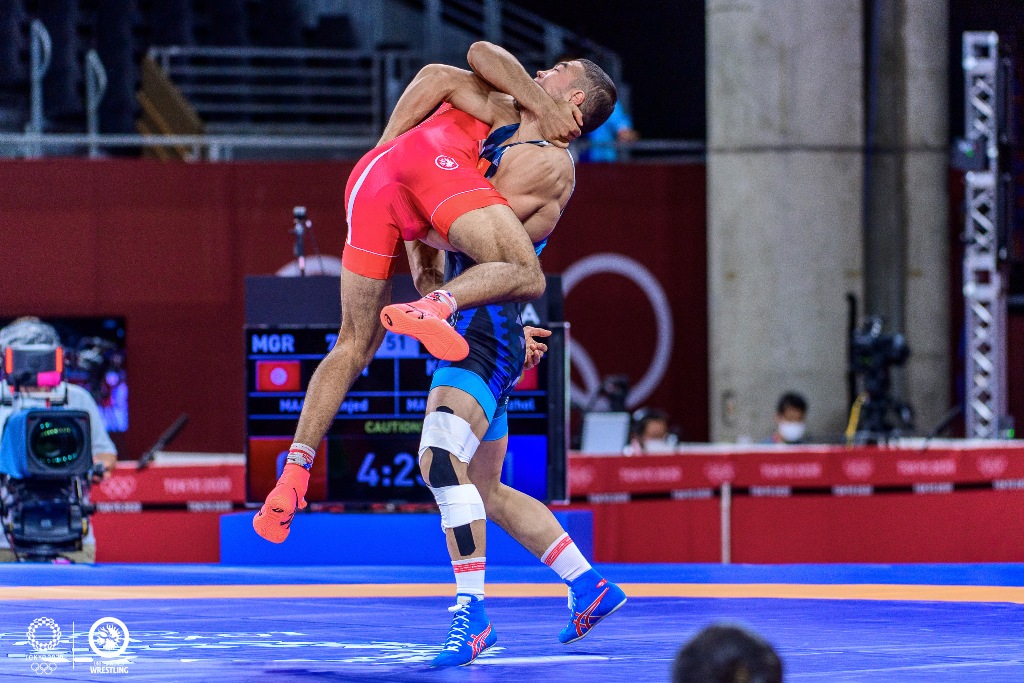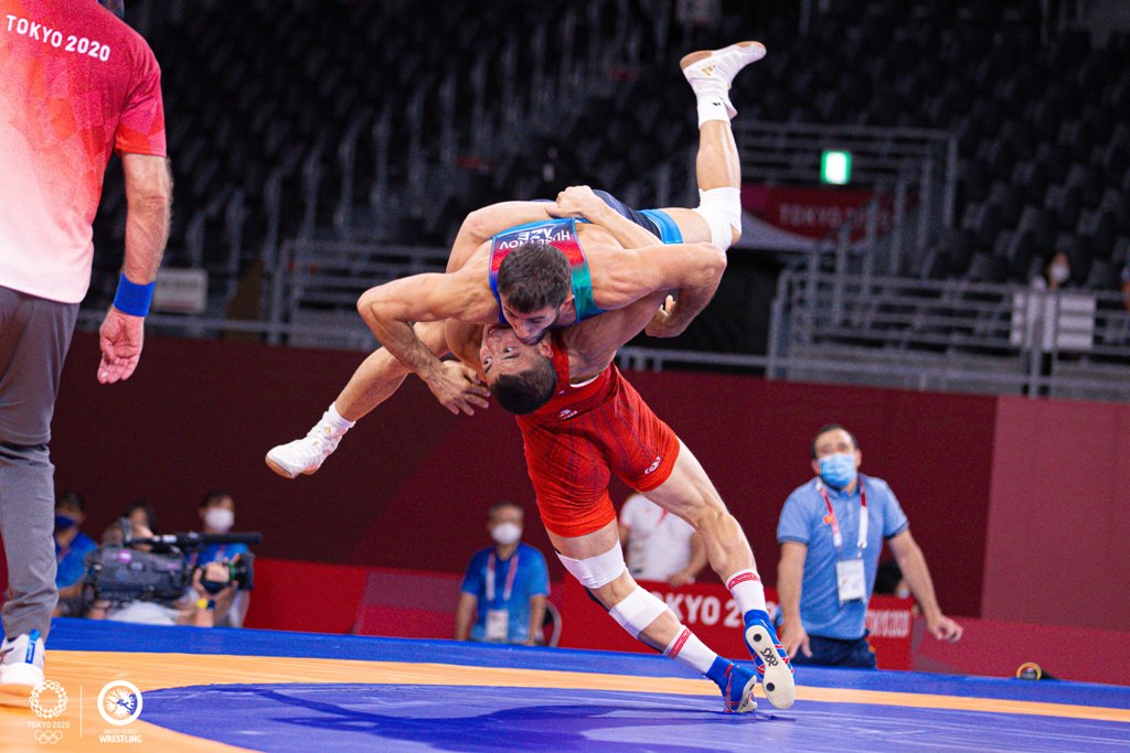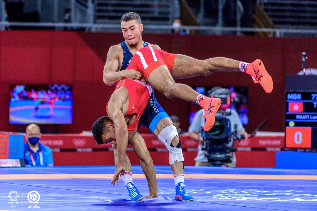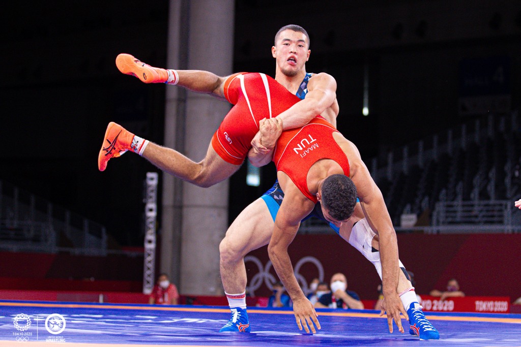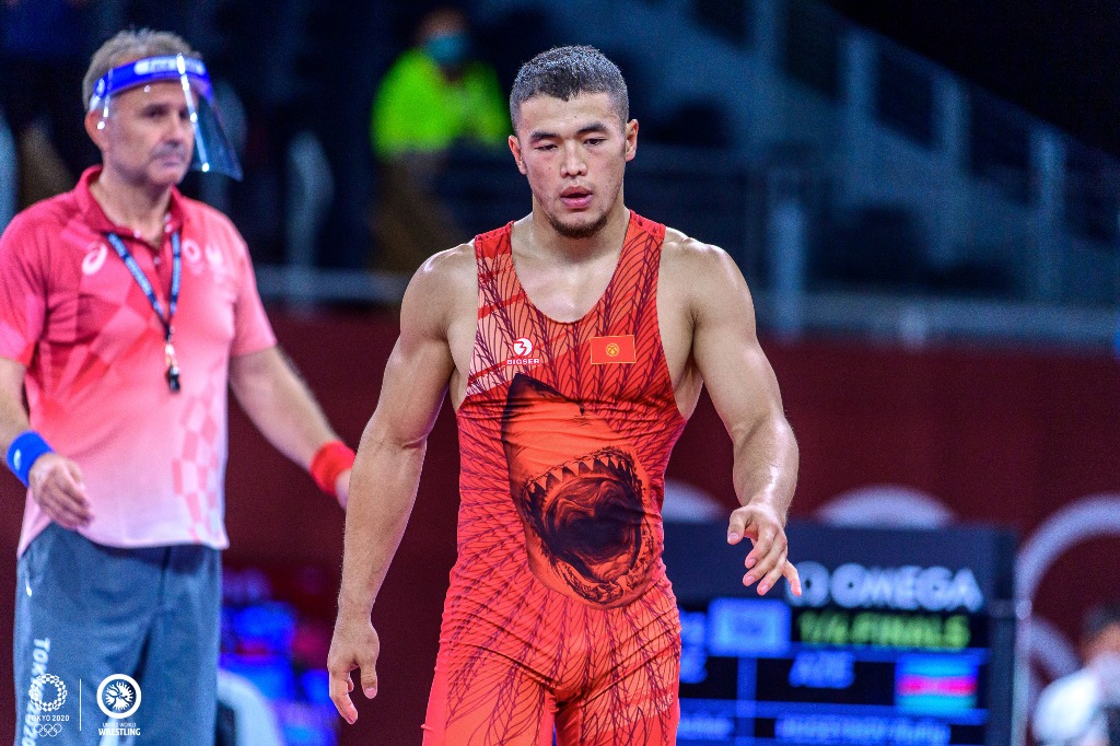 Фотографии бросков борца греко-римского стиля из Кыргызстана Акжола Махмудова, который вышел в финал на Олимпиаде в Токио, опубликовал Объединенный мир борьбы (UWW).