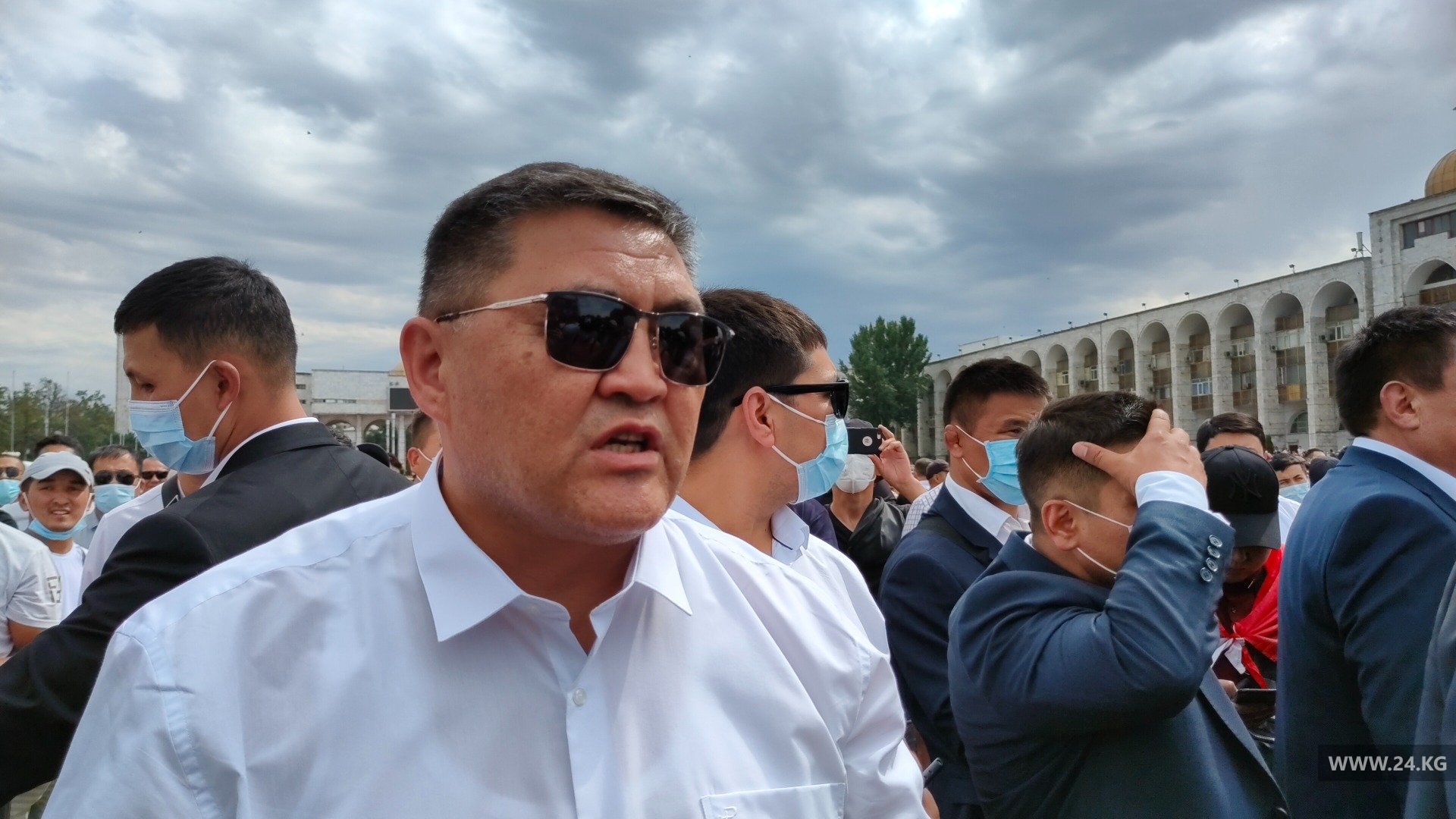 В самом разгаре схватки Айсулуу Тыныбековой на площадь пришел глава кабинета министров Улукбек Марипов.