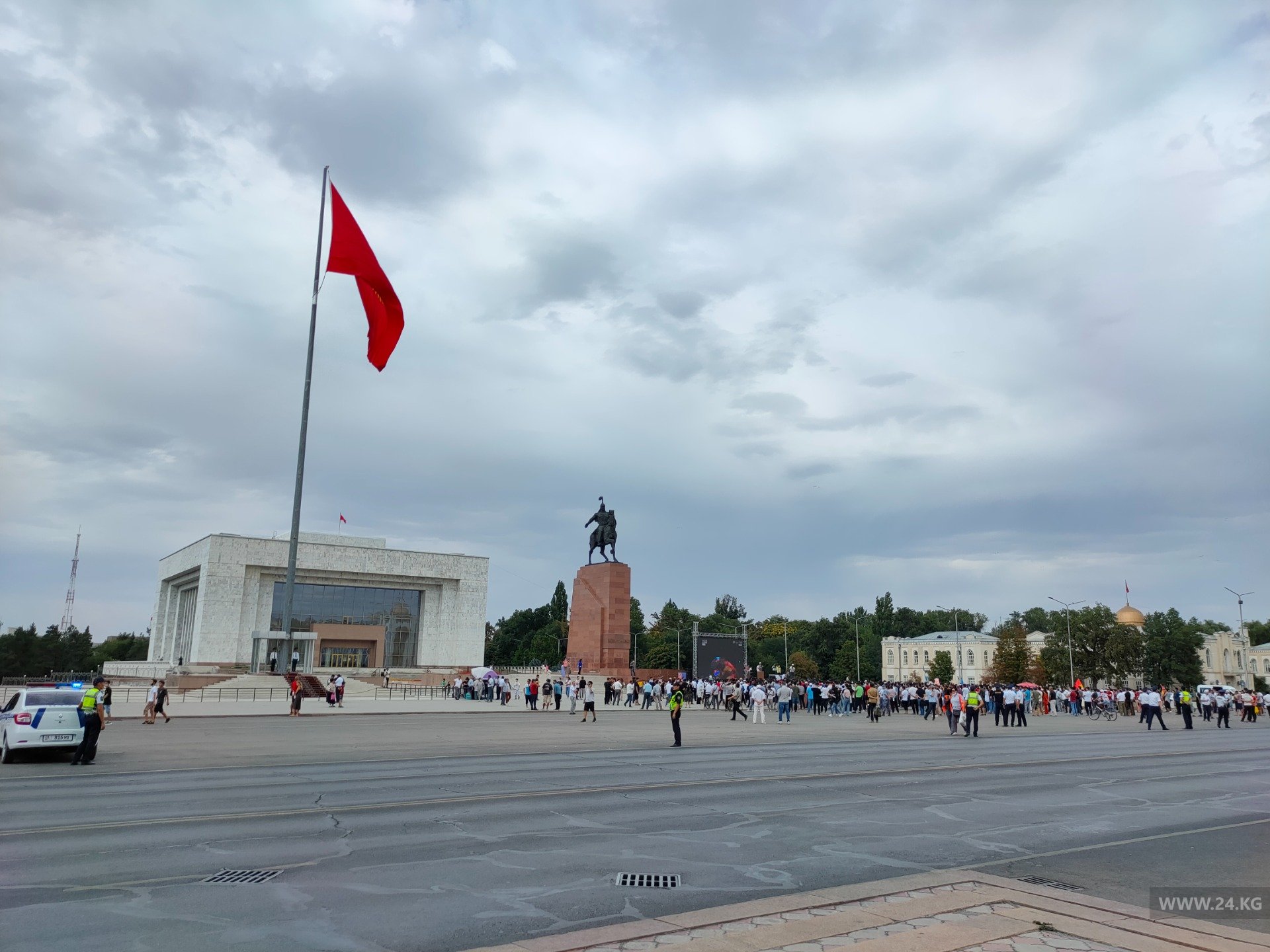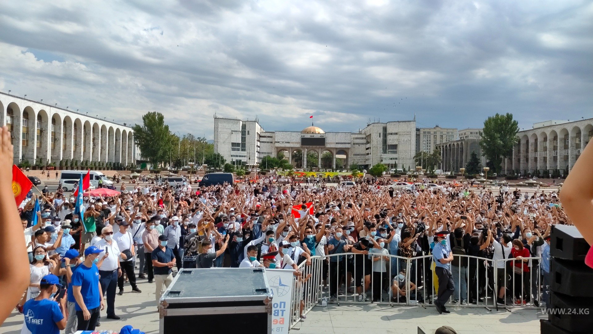 Крики, лозунги, свисты на площади Ала-Тоо — на экране заметили Айсулуу Тыныбекову. Публика взорвалась эмоциями.