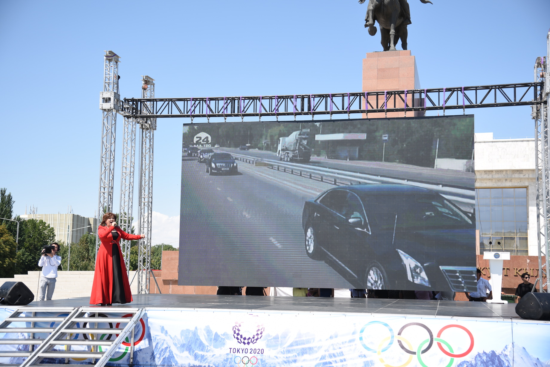 Передвижения кортежа показывали в прямом эфире на большом LED-экране, установленном на площади. За общественным порядком в центре Бишкека следят сотрудники управления Патрульной службы милиции и правоохранители других управлений внутренних дел.