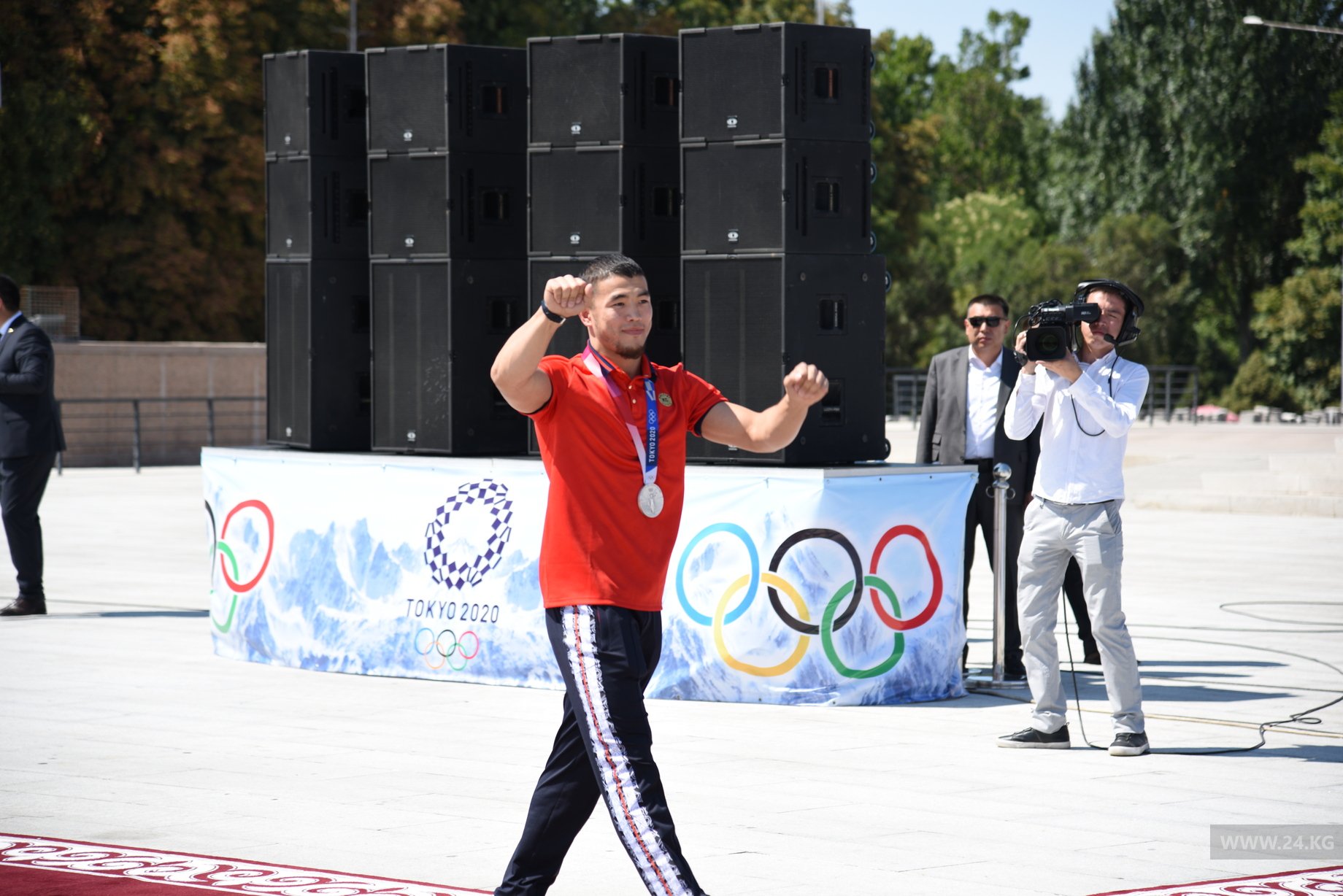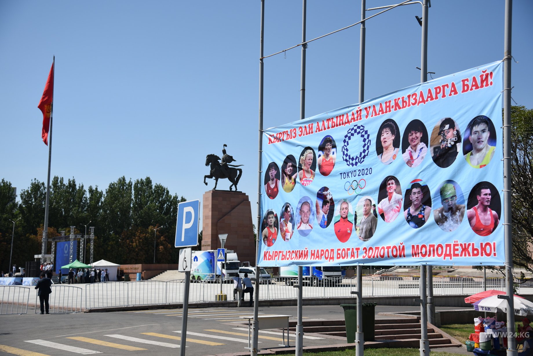 На площадь Ала-Тоо приехали медалисты и участники Олимпиады-2020 в Токио.