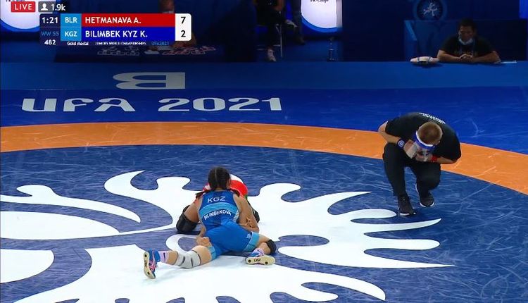 Калмира Билимбек кызы в весовой категории до 55 килограммов выиграла серебряную медаль молодежного чемпионата мира по борьбе, который проходит в Уфе.